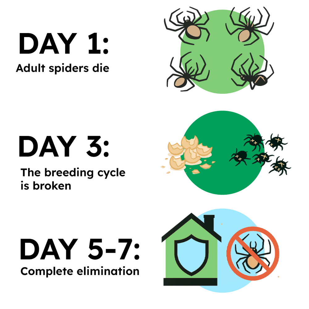 You'll see immediate results as spiders fall from surfaces and die within seconds.